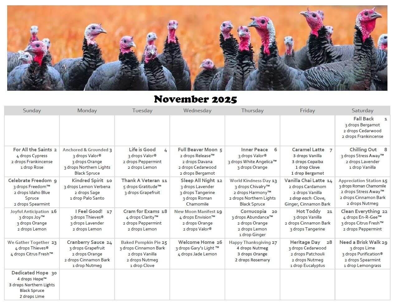 Diffusing is a wonderful health habit! Our diffusers are running 24/7 with blends that are supportive of individual needs or systems. Try some of these great combinations and enjoy the calming scent of Peace & Calming!
